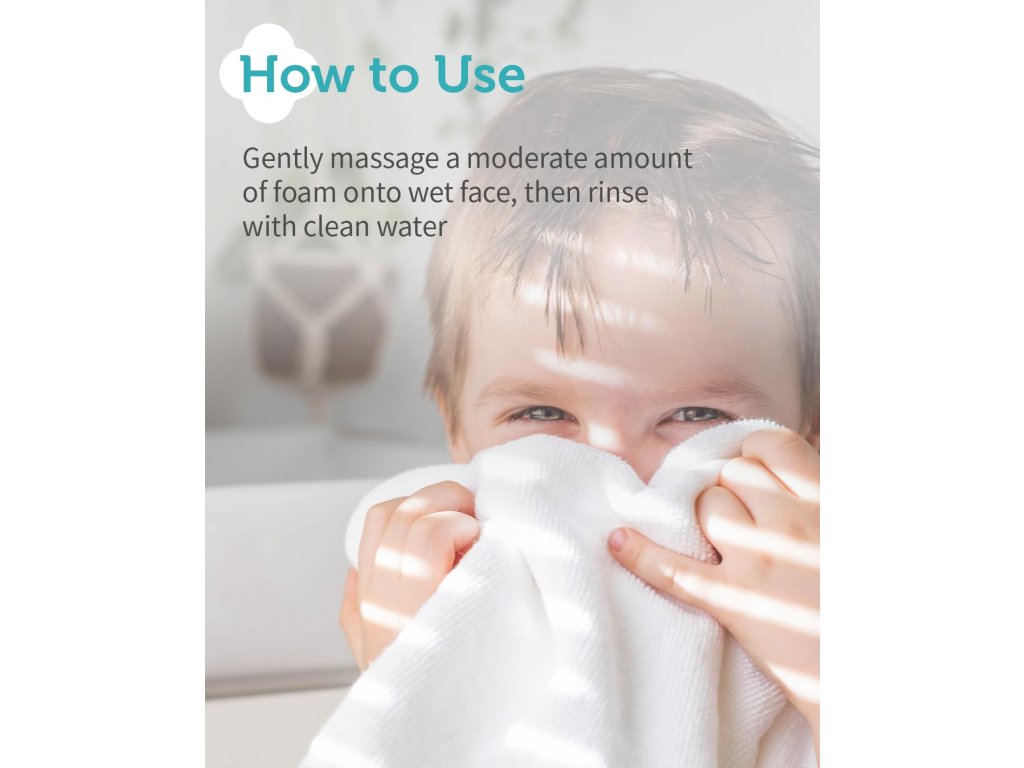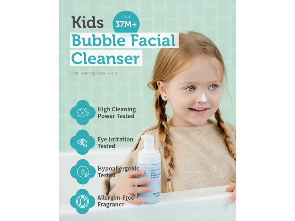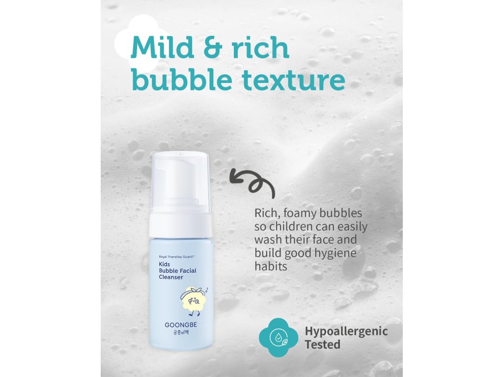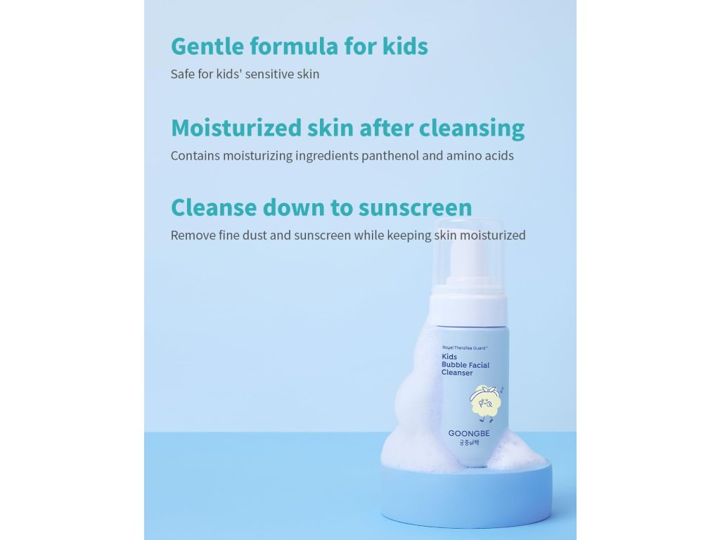 A GOONGBE Kids arctisztító hab gyengéden távolítja el az izzadságot és a szennyeződéseket, így a bőr tiszta, friss és mosolygós.