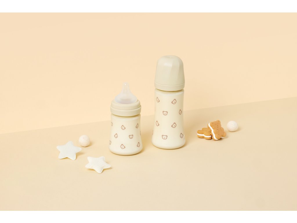 GROSMIMI PPSU cumisüveg 200 ml ergonomikus Stage 1 cumisüveggel és anti-colic rendszerrel. Orvosi minőségű PPSU anyag mikroplasztok nélkül, széles szájnyílás a könnyű tisztítás érdekében. Kompatibilis Straw Cup rendszerrel - növekszik a gyermekkel. Szín: Butter – bézs
