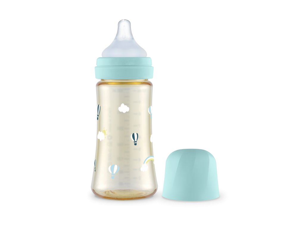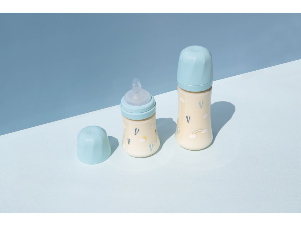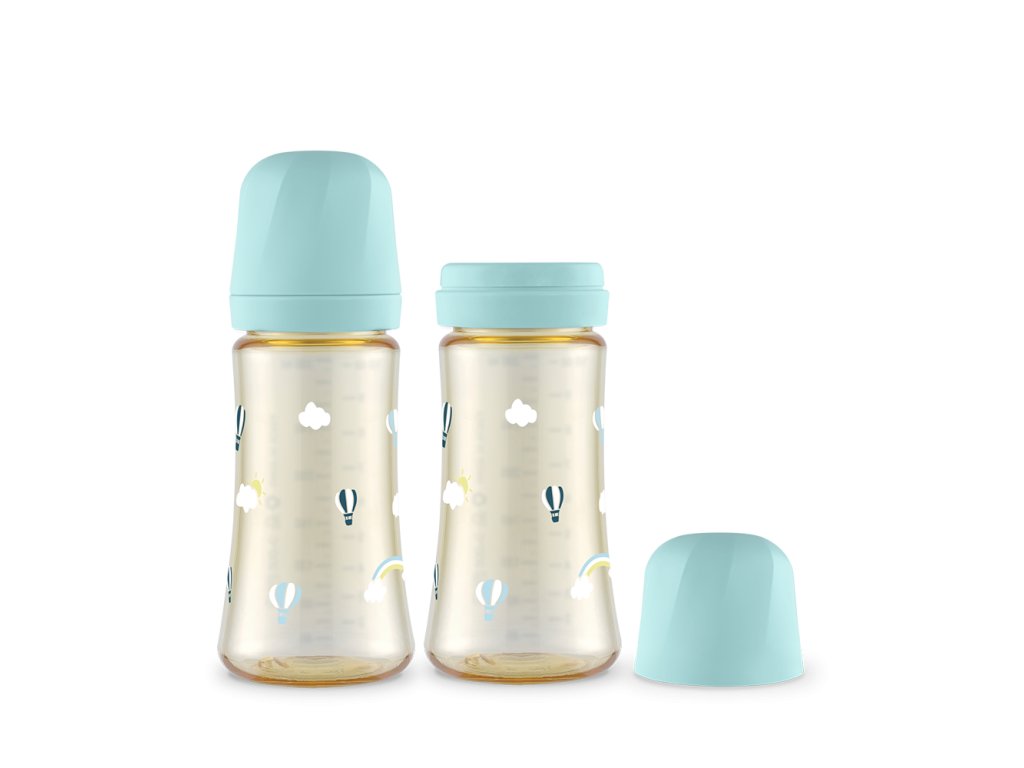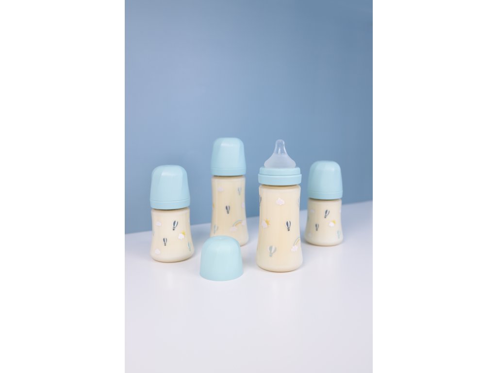 Orvosi minőségű PPSU anyagból készült, egyedi, 4 lépéses átalakító rendszerrel, amely lehetővé teszi, hogy a palack a gyermekkel együtt növekedjen egészen a kisgyermekkorig.