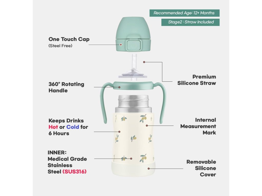 6 hónapos és idősebb gyermekek számára, akik már ismerkednek a pohárral. Szülőknek, akik kompaktabb szigetelt palackot keresnek. Rövid kirándulások, parkban sétálás. Forró nyári napokon - italok hűvösen tartása. Télen - meleg italok akár órákig. Gyermekek, akiknek tartósabb Stage 2 szívószálra van szükségük. Napi használatra. Fiatalabb gyermekek (6 hónapos+) - kisebb kapacitás, könnyebb fogás. Gyermekek allergiások a műanyagokra.