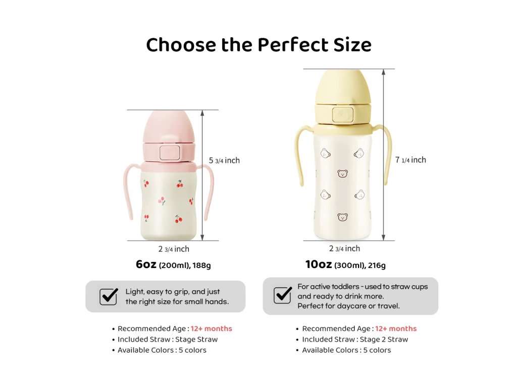 Kezdő gyermekek számára, akik rozsdamentes acélra váltanak → 6oz (200 ml) kompaktabb.