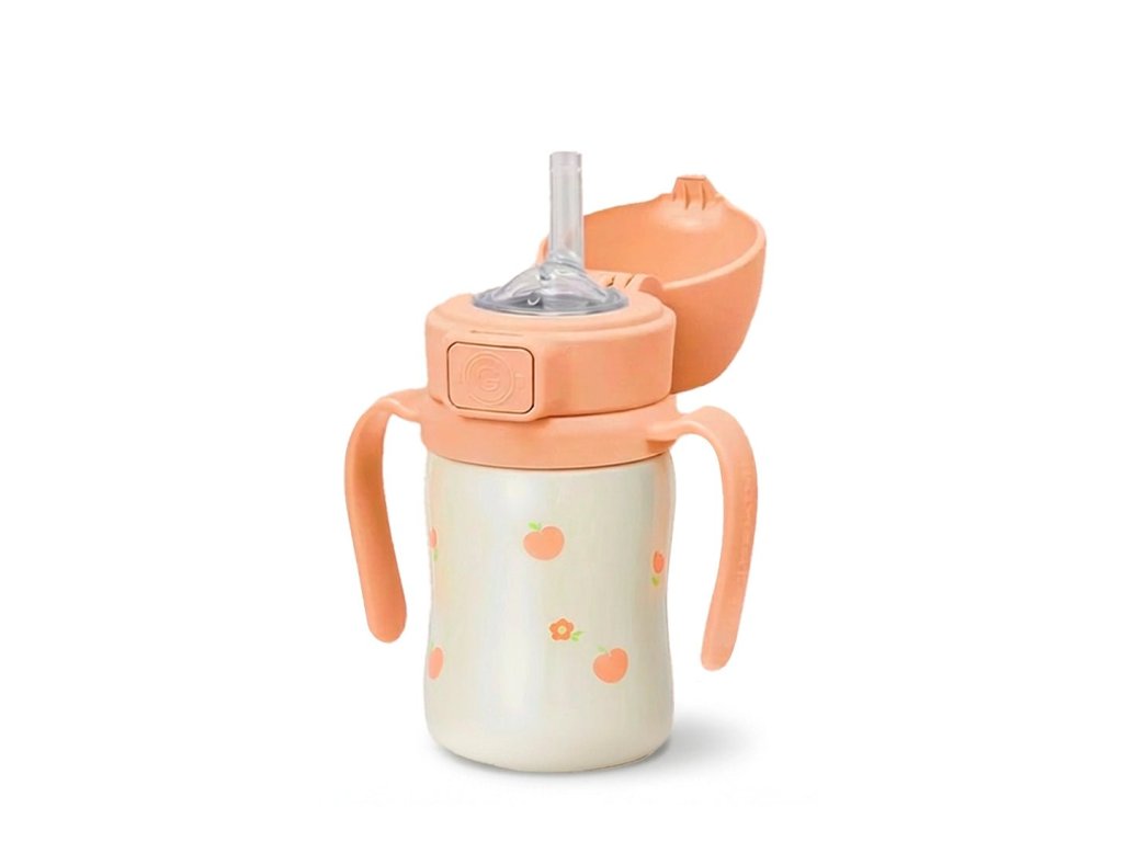 GROSMIMI Rozsdamentes acél szívószálas tanulópohár Peach Flower 200 ml