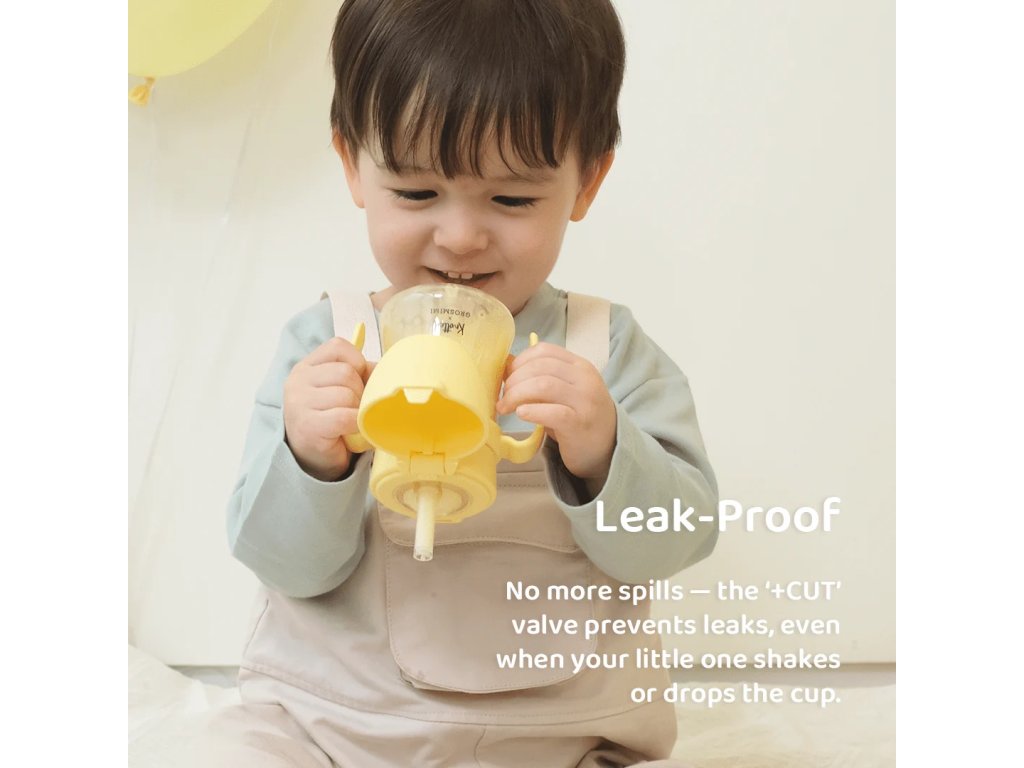 Orvosi minőségű PPSU - mikroplasztikmentes. Kémiailag stabil - hőálló 200°C-ig. Platina szilikon szívószál - ellenálló és biztonságos. '+CUT' technológia - szivárgásmentes. One Touch fedél - egyszerű használat. 360° forgó fogantyúk - ergonomikus fogás. Stage 1 és Stage 2 szívószálak - növekszik a gyermekkel. Stabil kialakítás - nem borul fel. Mosogatógépben tisztítható és sterilizálható. Átlátszó - látható az ital mennyisége. BPA-, ftalátmentes. 200ml (109g, 6M+) és 300ml (126g, 12M+) változat. Koreában készült.
