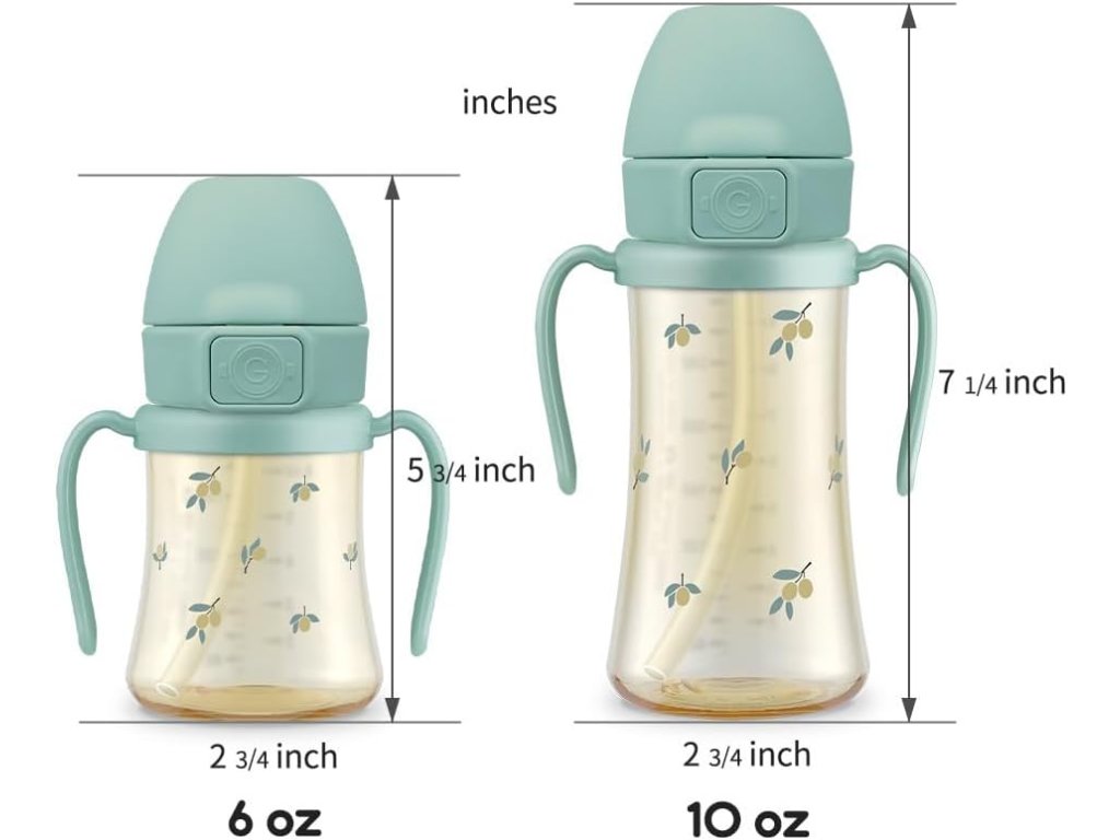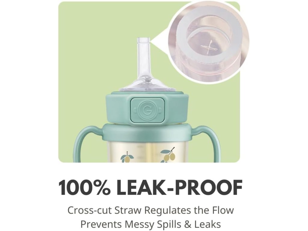 A GROSMIMI PPSU Szívószálas itatópohár 6 hónapos kortól (200ml) vagy 12 hónapos kortól (300ml) ajánlott gyermekek számára. Prémium PPSU orvosi minőségű anyagból készült, fejlett szivárgásmentes '+CUT' rendszerrel és praktikus One Touch flip-top fedéllel.