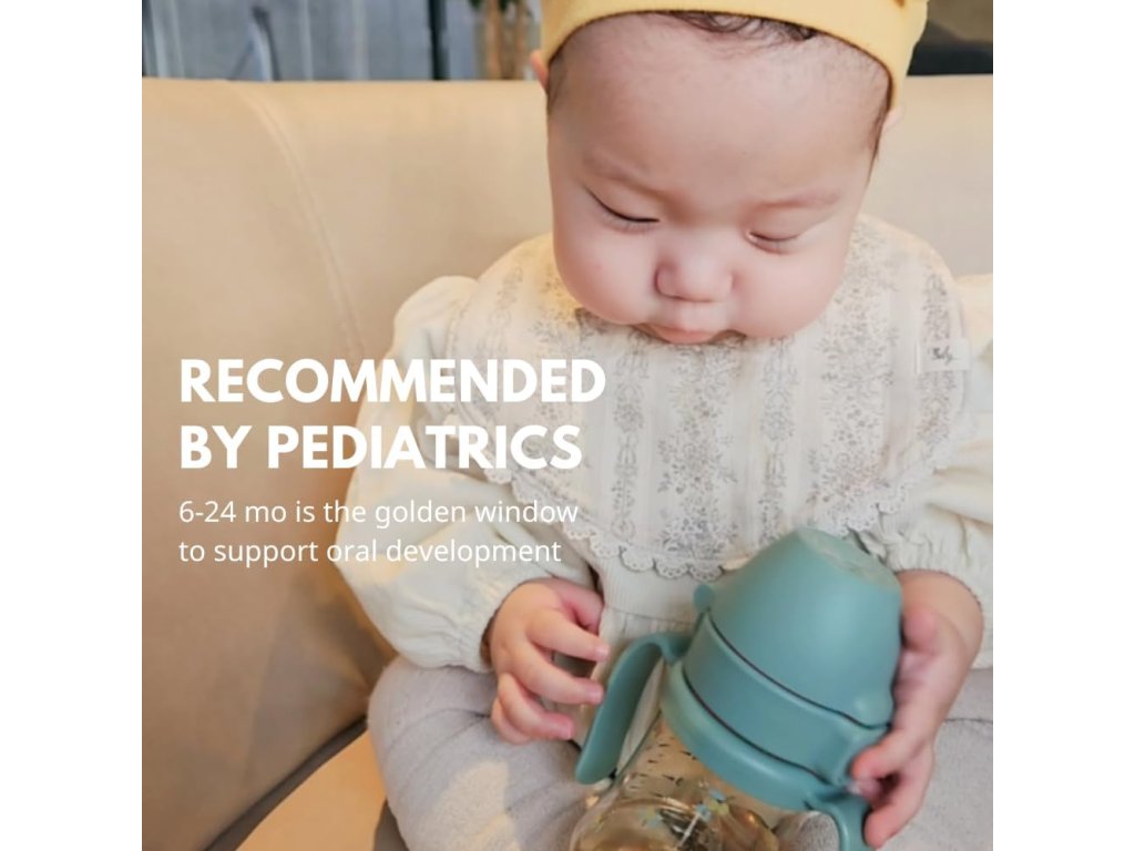 Orvosi minőségű PPSU - mikroplasztikmentes. Kémiailag stabil - hőálló 200°C-ig. Platina szilikon szívószál - ellenálló és biztonságos. '+CUT' technológia - szivárgásmentes. One Touch fedél - egyszerű használat. 360° forgó fogantyúk - ergonomikus fogás. Stage 1 és Stage 2 szívószálak - növekszik a gyermekkel. Stabil kialakítás - nem borul fel. Mosogatógépben tisztítható és sterilizálható. Átlátszó - látható az ital mennyisége. BPA-, ftalátmentes. 200ml (109g, 6M+) és 300ml (126g, 12M+) változat. Koreában készült.