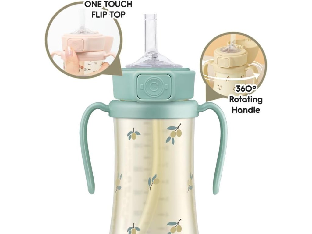 A GROSMIMI PPSU Szívószálas itatópohár 6 hónapos kortól (200ml) vagy 12 hónapos kortól (300ml) ajánlott gyermekek számára. Prémium PPSU orvosi minőségű anyagból készült, fejlett szivárgásmentes '+CUT' rendszerrel és praktikus One Touch flip-top fedéllel.