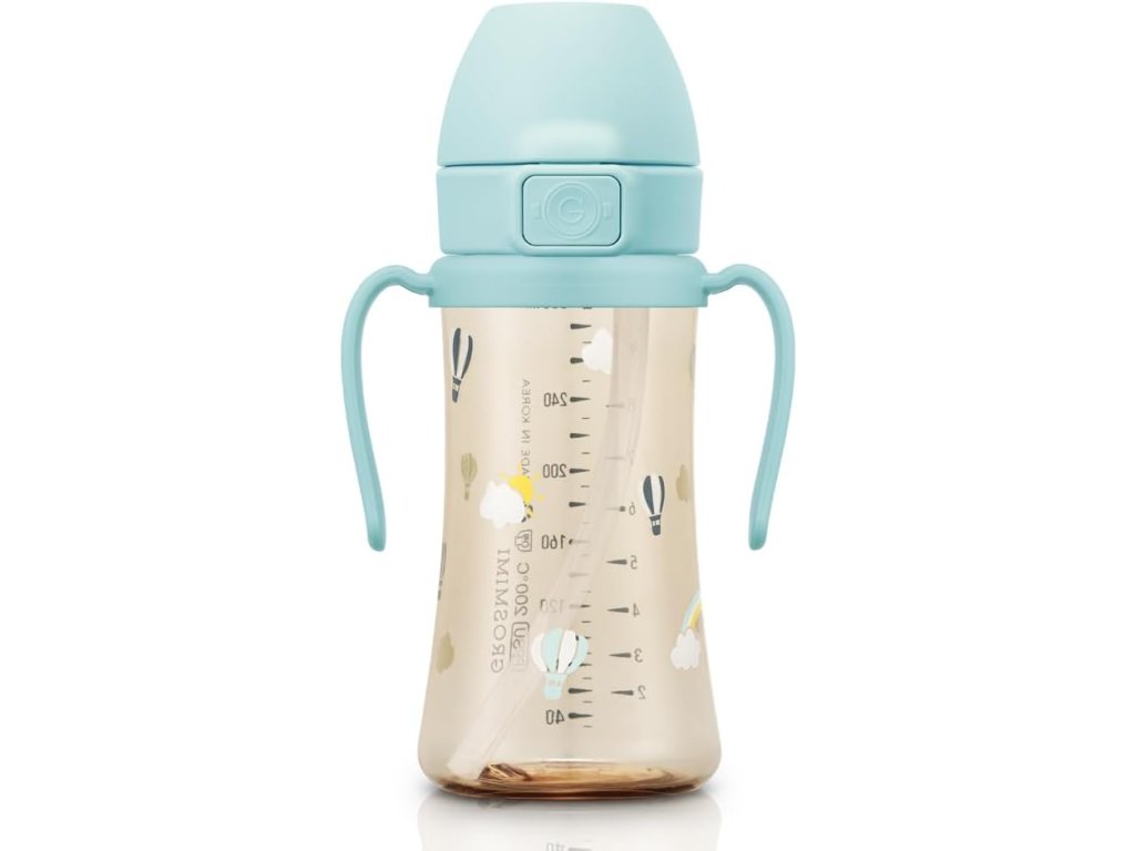 A GROSMIMI PPSU Szívószálas itatópohár 6 hónapos kortól (200ml) vagy 12 hónapos kortól (300ml) ajánlott gyermekek számára. Prémium PPSU orvosi minőségű anyagból készült, fejlett szivárgásmentes '+CUT' rendszerrel és praktikus One Touch flip-top fedéllel.