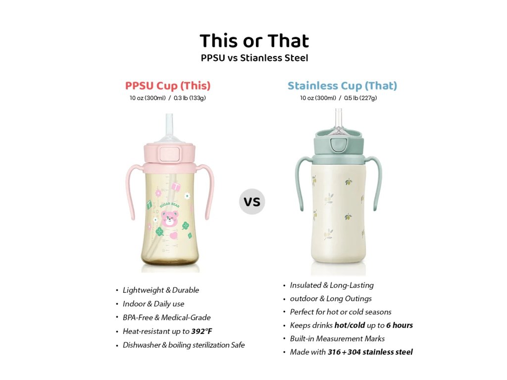 MIKROPLASZTIK- ÉS KÁROS VEGYI ANYAGMENTES - A PPSU orvosi minőségű anyag, amely nem szabadít fel mikroplasztikokat vagy toxikus anyagokat az italokba, még meleg folyadékok esetén sem. Kémiailag stabil anyag az egészségügyben.