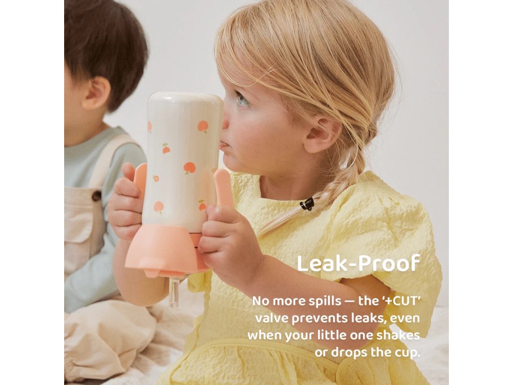 A palack szabadalmaztatott '+CUT' (Cross Cut) technológiával van ellátva, amely tökéletes védelmet nyújt a kifolyás ellen. A szilikonban lévő speciális kereszt alakú vágás csak szívás közben nyílik, és azonnal záródik, amikor a gyermek abbahagyja az ivást. A levegőszabályozó szelep biztosítja a folyékony áramlást, buborékmentes és nyomáskiegyenlített ivást.