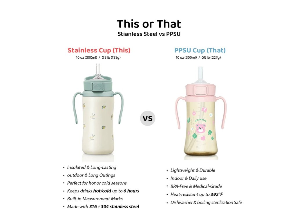 Kezdő gyermekek számára, akik rozsdamentes acélra váltanak → 6oz (200 ml) kompaktabb.