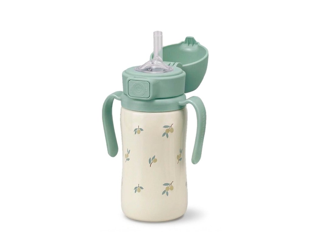 GROSMIMI Rozsdamentes acél szívószálas tanulópohár Olive 300 ml