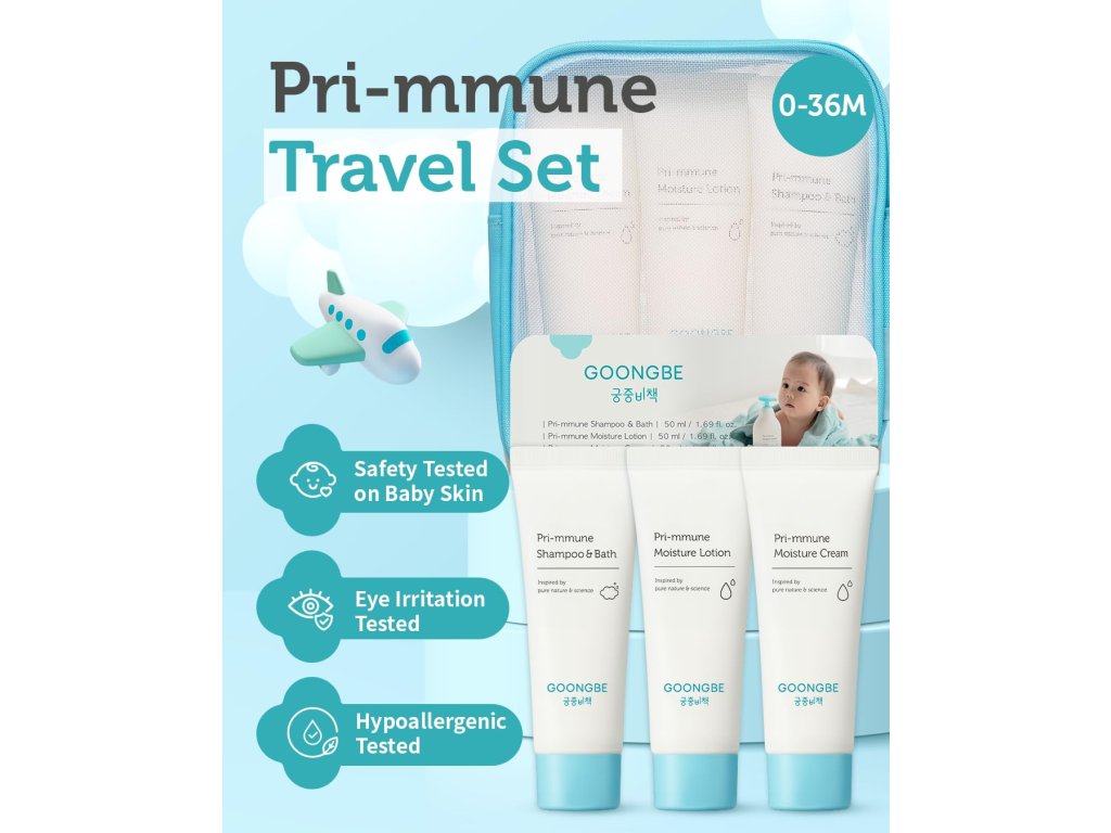 A Pri-mmune Utazó Szett három gyengéd terméket tartalmaz praktikus, 50 ml-es kiszerelésben – ideális utazáshoz, nyaraláshoz vagy akár a kórházba.