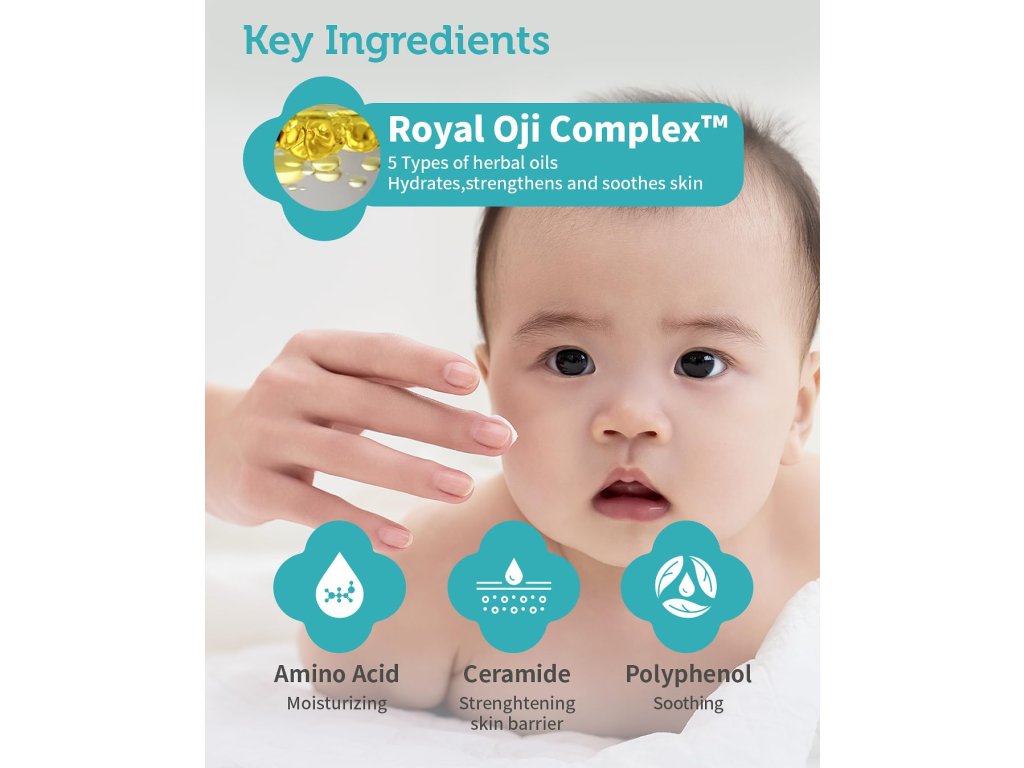 A Royal Oji Complex™ hidratálja, puhítja és védi a baba bőrét.